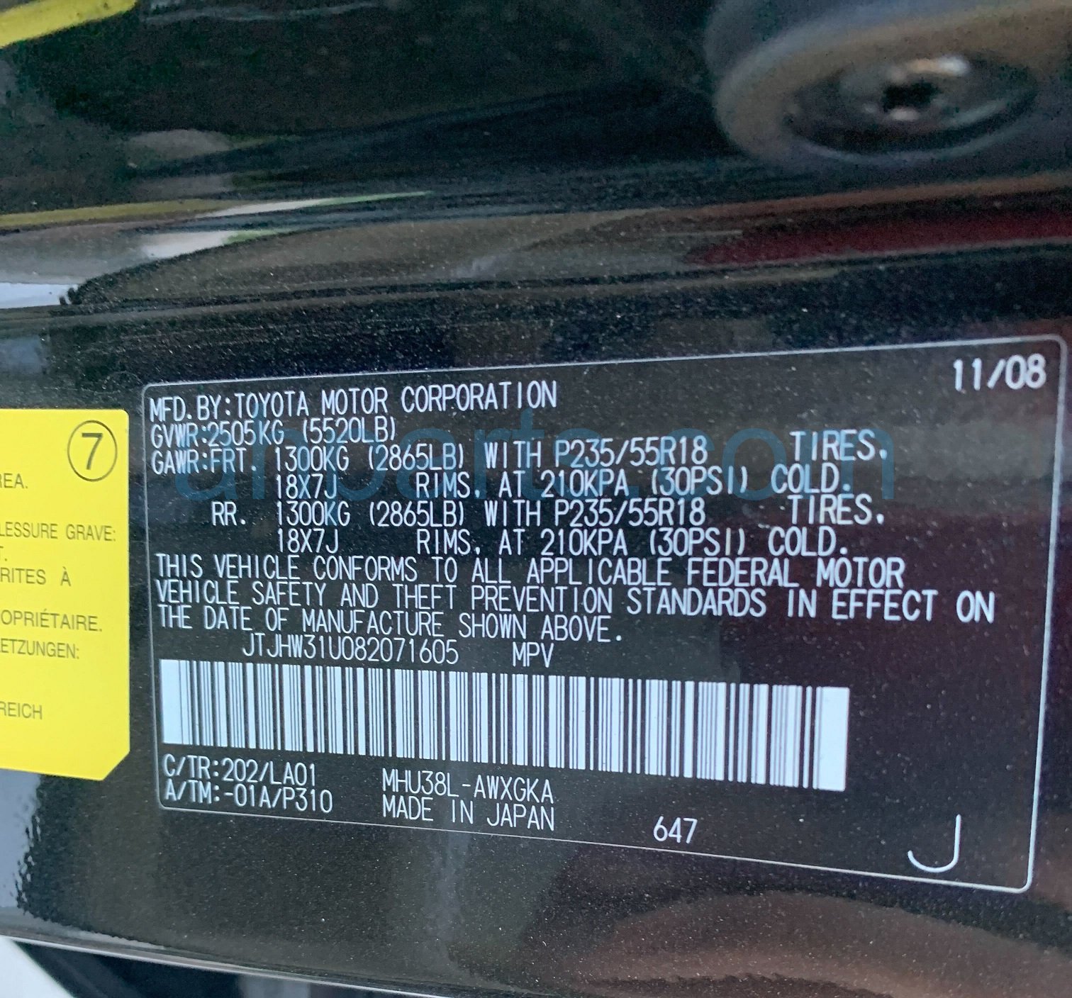 Car 25-267-3 - 2008 Lexus Rx400h 4 Door Wagon