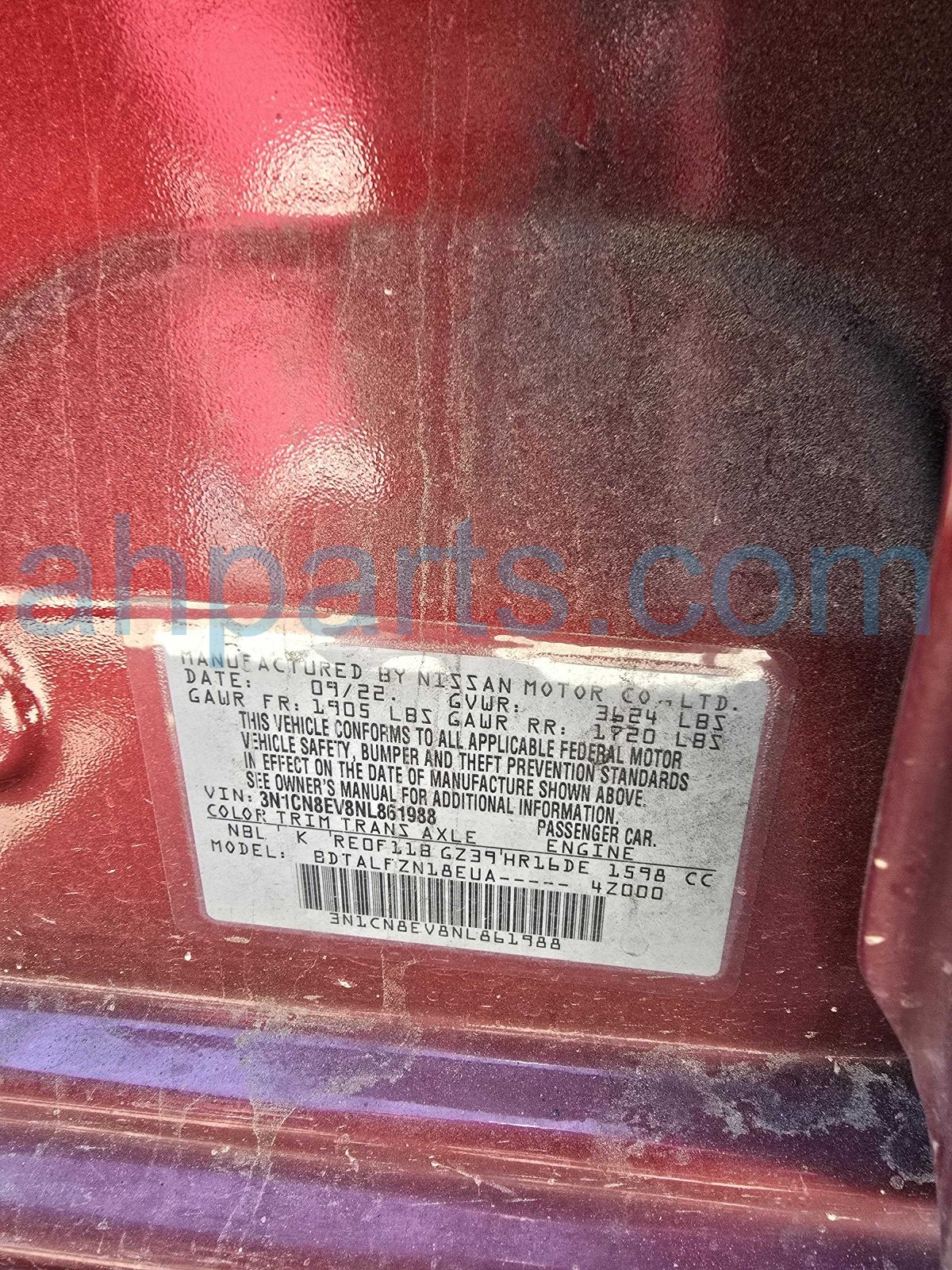 Front passenger DOOR - RED - NO MIRROR/TRIM