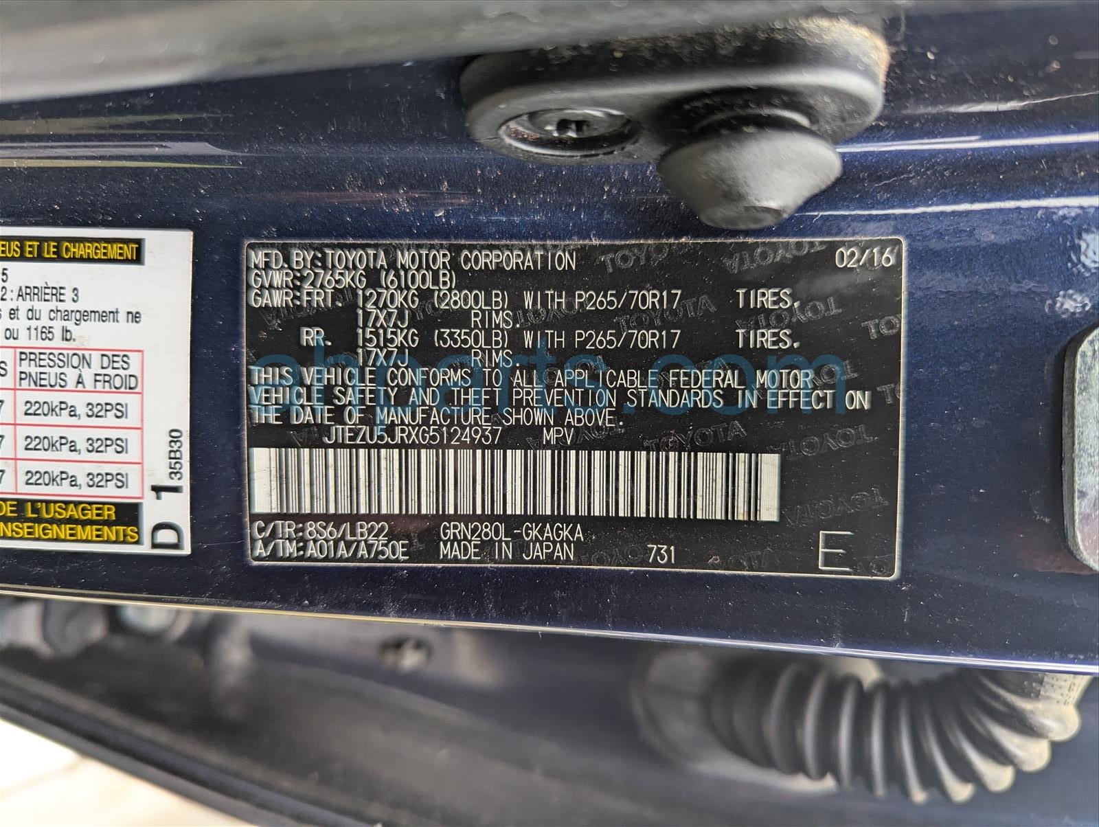 Car 26-016-3 - 2016 Toyota 4 Runner 4 Door Wagon