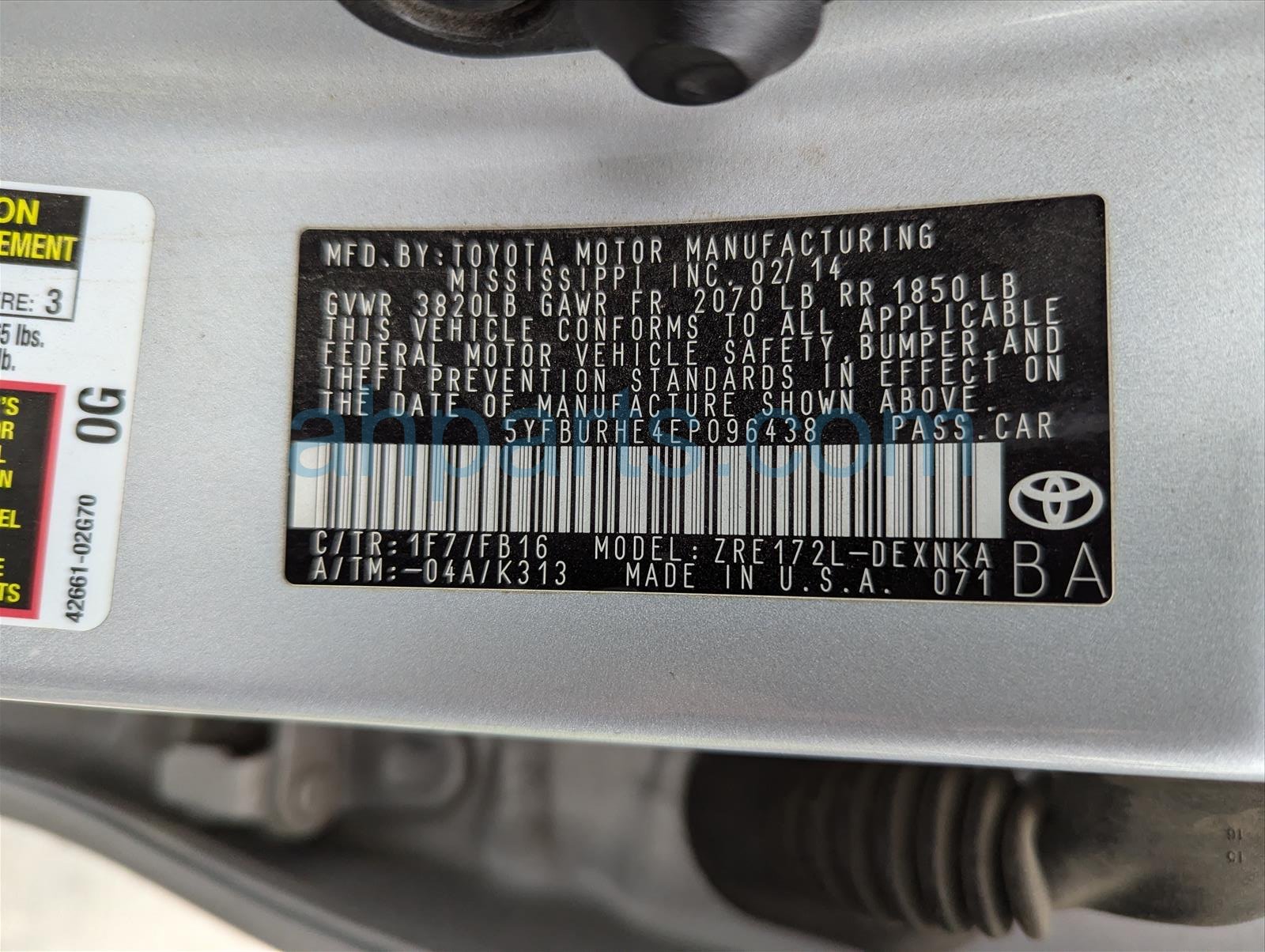 Car 25-321-3 - 2014 Toyota Corolla 4 Door Sedan