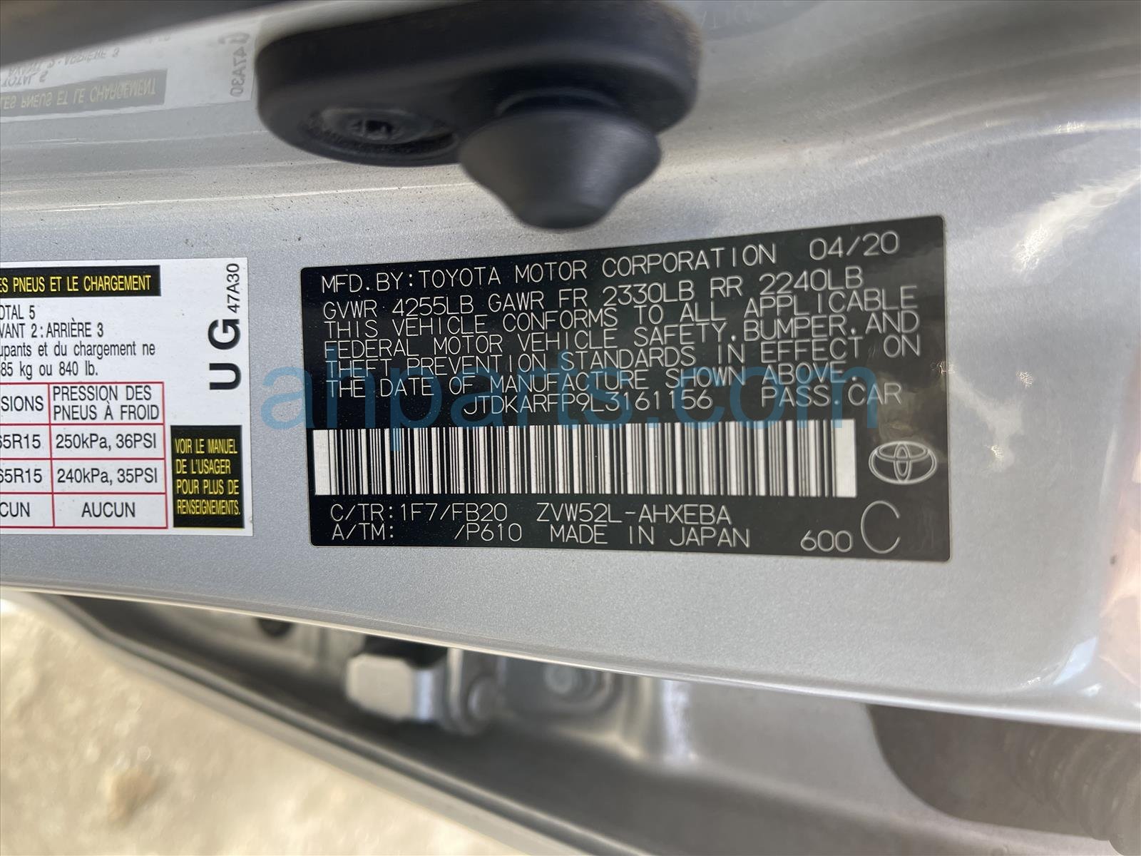Car 25-089-3 - 2020 Toyota Prius 4 Door Hatchback