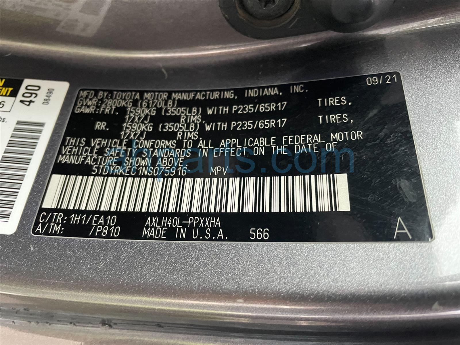 Car 25-334-3 - 2022 Toyota Sienna Passenger Van 4 Door